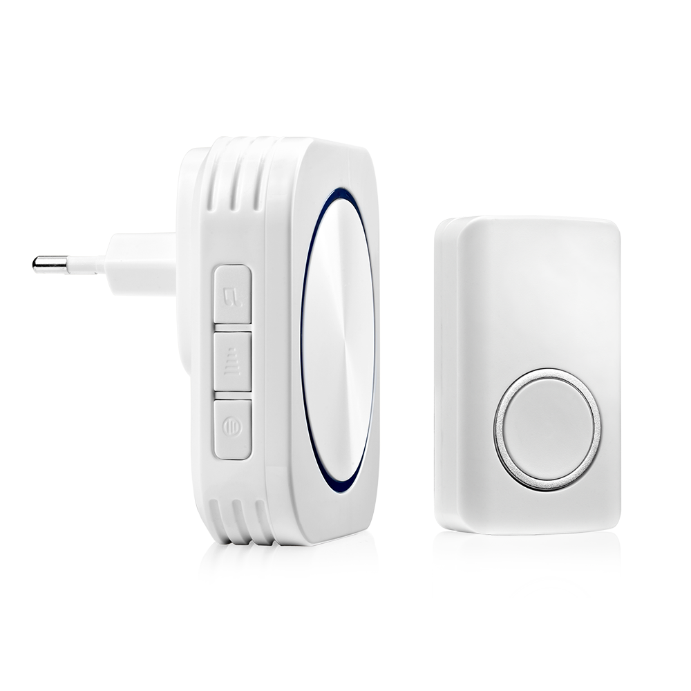 2、在接收机上按住“模式”按钮约5秒,然后按下发射按钮10秒钟内两次,如果门铃响则对码成功。(发射机可以控制接收器)